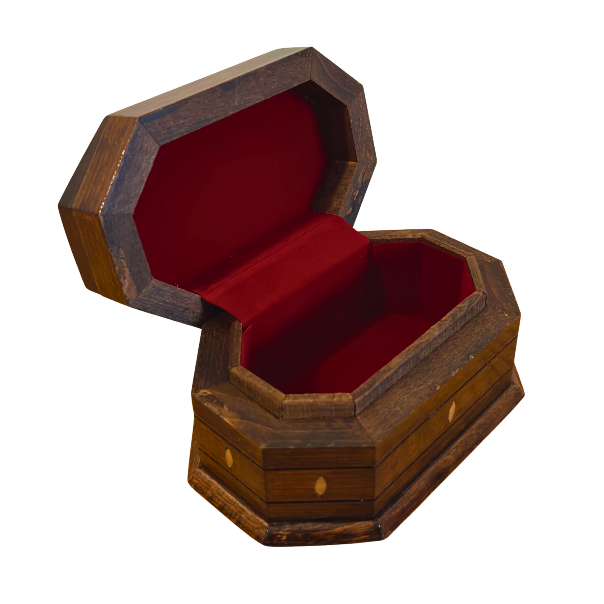 Das Innere ist mit weinrotem Samt ausgekleidet – ein luxuriöses Detail, das Ihre wertvollen Gegenstände schützt und stilvoll präsentiert.