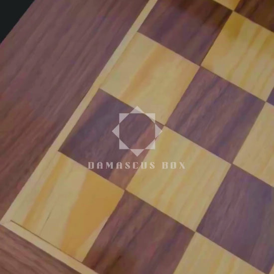 Damascene chess table, backgammon table, Gaby Al Dayeh, handmade Syrian mosaic, oriental art, Damascus Box, luxury wood game set, chess and backgammon pieces included, traditional craftsmanship